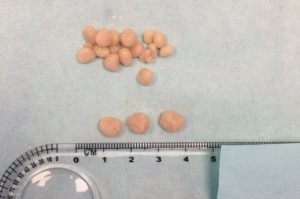 Figuur 4: Steentjes die bij een teef zijn verwijderd via urohydropropulsie