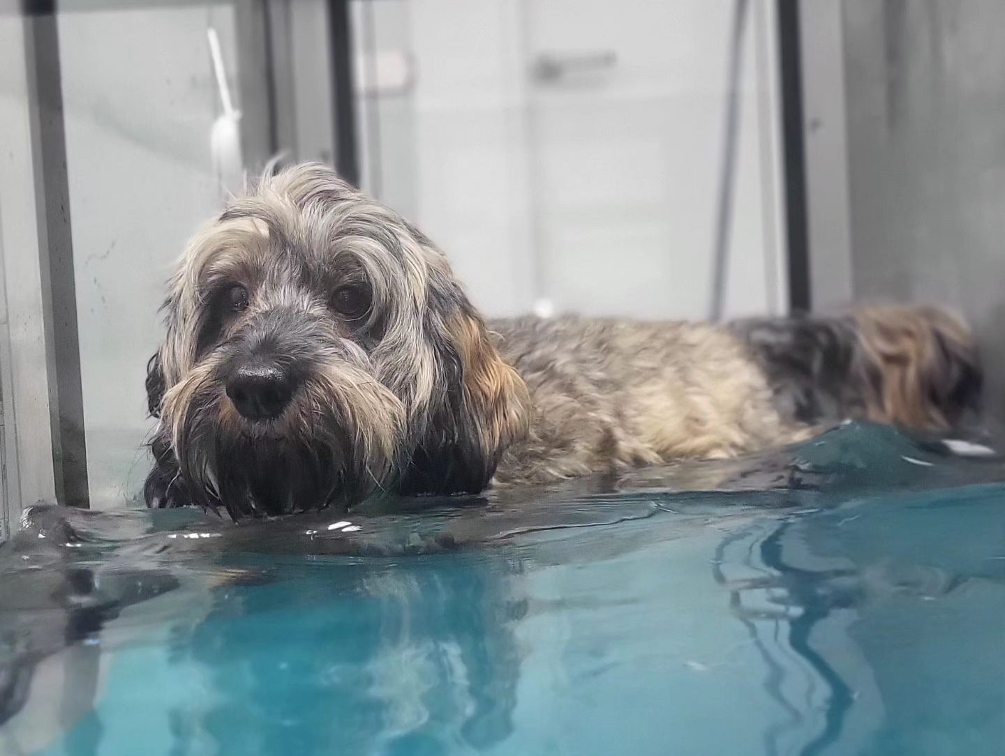 Dit is een hele mooie vorm van oefentherapie. Wij werken met een aquatrainer: een loopband in een bak met water. Deze loopband kunnen we instellen op snelheid, helling en hoogte. Ook de sterkte van de stroming is in te stellen. Niet alleen honden kunnen in de aquatrainer. Een hele stoere kat is ook zeker welkom!