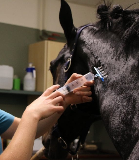 Na het constateren van bijvoorbeeld een blessure zijn er verschillende behandel opties afhankelijk van het type blessure. Zo zijn er verschillende lokale injectie technieken die toegepast kunnen worden zoals IRAPPRP en Mesotherapie. Daarnaast kan systemisch behandeling met Tildren of orale medicatie (ontstekingsremmer, pijnstiller en supplementen) als behandeling ingezet worden. Ook behandelingen van buitenaf zoals aangepast beslag, shockwave therapie en begeleiding van een fysiotherapeut of chiropractor kan erg belangrijk en zinvol zijn bij het revalidatie proces. Meer informatie.