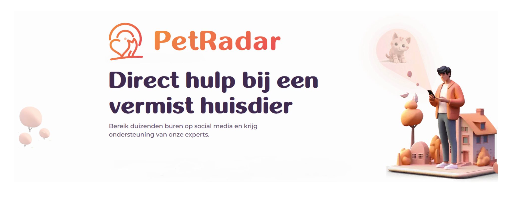PetRadar, jouw partner in de zoektocht naar vermiste huisdieren. Wanneer je geliefde huisdier vermist raakt, biedt PetRadar een helpende hand. Met digitale Missing Ads, QR-code enabled posters en een persoonlijk dashboard, verhoogt PetRadar de kans om jouw vermiste huisdier snel en veilig thuis te brengen.